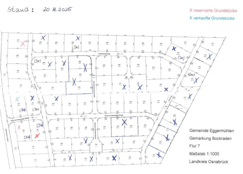 Plan verkaufter und reservierter Grundstücke: